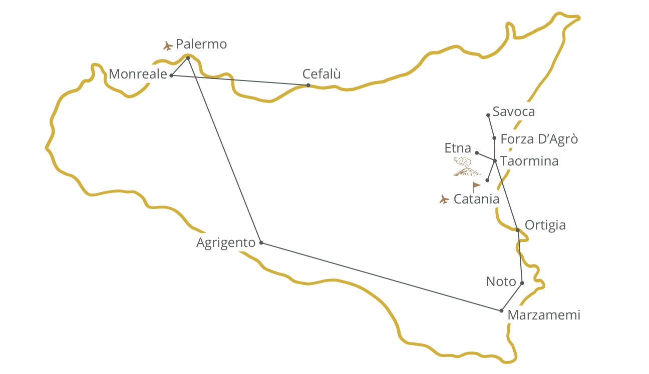This 9 day Sicilian journey begins in Taormina, where guests experience the charm of the Ionian coast before exploring the dramatic landscapes of Mount Etna with a jeep adventure and winery tasting. Traveling in comfort on a luxury Mercedes coach, this small-group tour (maximum 14 guests) ensures a more personal and immersive experience throughout. The itinerary blends cinematic history in Savoca and Forza d’Agrò, hands-on culinary experiences, and guided visits through the ancient wonders of Syracuse and Ortigia. Guests will discover Baroque beauty in Noto, coastal charm in Marzamemi, and the awe-inspiring Valley of the Temples in Agrigento. The journey concludes in vibrant Palermo, with immersive cultural tours, street food tastings, and a visit to Monreale Cathedral offering a perfect blend of history, gastronomy, and authentic Sicilian experiences.