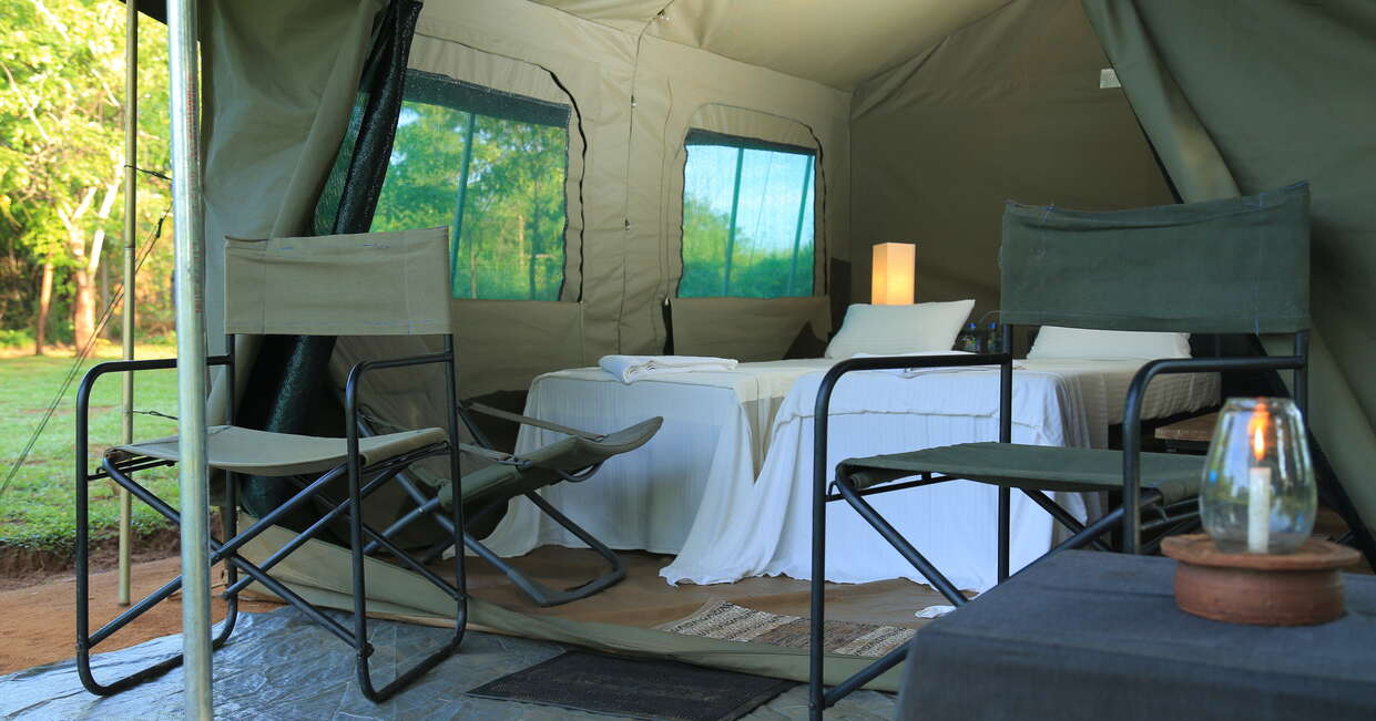 Spending tonight in a rural location and closer to nature allows us a different experience as well as convenient access to Yala National Park's less visited entrance. This semi-permanent tented safari camp has comfortable tents that are fitted with proper beds, a fan, ensuite toilet, basin and shower. Meals are served al fresco with a BBQ in the evening and a bonfire. Please note that, as we are in a natural setting, WiFi is not available.