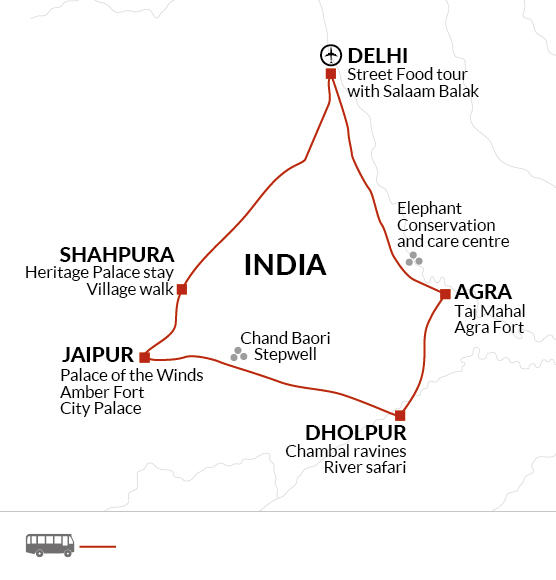 This morning, we leave the hustle and bustle of the capital as we head south towards Agra. Before we reach the city, we'll make a stop at the Wildlife SOS Elephant Conservation and Care Centre, just outside Agra.