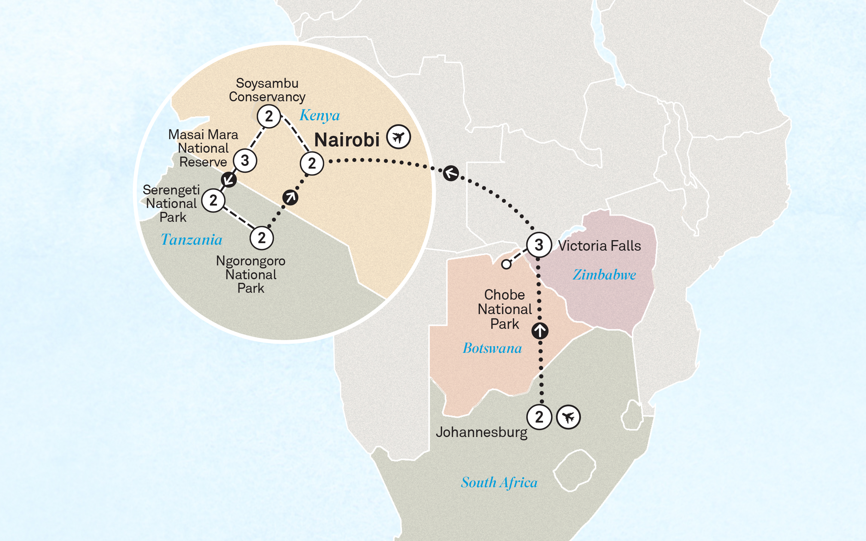 The treasures of the natural world await on this incredible odyssey that takes you from South Africa into the heart of the Zambezi River.