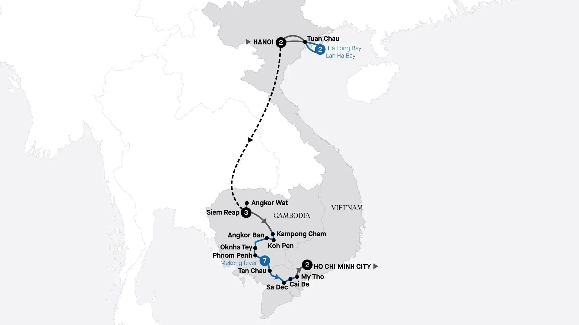 Explore Vietnam and Cambodia in depth, beginning in fascinating Hanoi. Discover Ha Long Bay on a three-day cruise and spend seven nights on the Mekong River aboard APT’s boutique luxury river ship, the Mekong Serenity. Visit Angkor Wat, Phnom Penh and charming riverside villages before arriving in bustling Ho Chi Minh City.