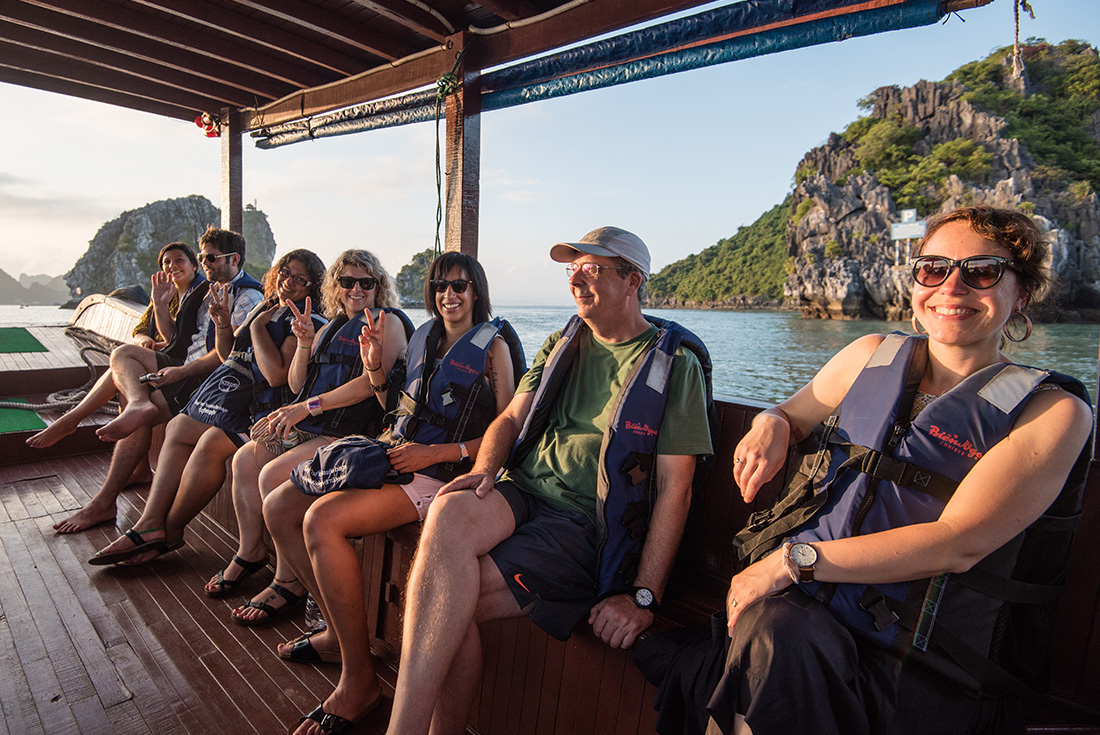 Travel by private minibus to the spectacular UNESCO World Heritage site of Ha Long Bay. This is one of Vietnam’s most beautiful places, a secluded bay of emerald waters flecked with limestone islands and caves. When you arrive, you’ll hop on a cruise to explore Surprise Cave and the surrounding rock formations. In the warmer months, perhaps go kayaking or opt for a swim from Ti Top Island. On board, there’ll be a dining room and bar where you’ll enjoy your meals, including fresh seafood for lunch and dinner. Spend the night on the boat, maybe having a drink with your fellow travellers at the bar, beneath a sky alive with starlight.