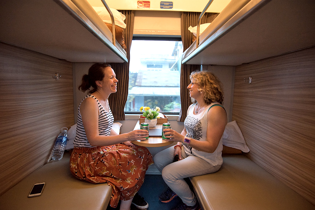 Today’s adventure will be on the back of a motorbike! You’ll have your own driver who will take you around the Imperial Citadel and Thien Mu Pagoda – the unofficial symbol of Hue. This site dates back to 1601 and is still an active Buddhist monastery. Here, you’ll also see the car left by a monk who set himself alight to protest the treatment of Buddhists by the South Vietnamese regime. Ride to a special lunch spot at a Buddhist monastery and sit down to a vegetarian feast, then drive to the royal tomb of Emperor Tu Duc, which is set on a lake surrounded by frangipani bushes and pine trees. In the evening, board an overnight train to Hanoi.