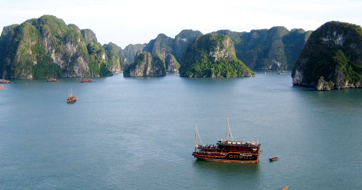 This morning, we'll drive out towards the magnificent Halong Bay in the Gulf of Tonkin. Thousands of jagged limestone islands rise out of the jade-green waters like the hairy scales of a submerged dragon. In fact, Halong means 'where the dragon descends to the sea' as legend tells that the rugged seascape was created by the pounding tail of a dragon as he ran from the mountains into the sea, carving islands in his wake.