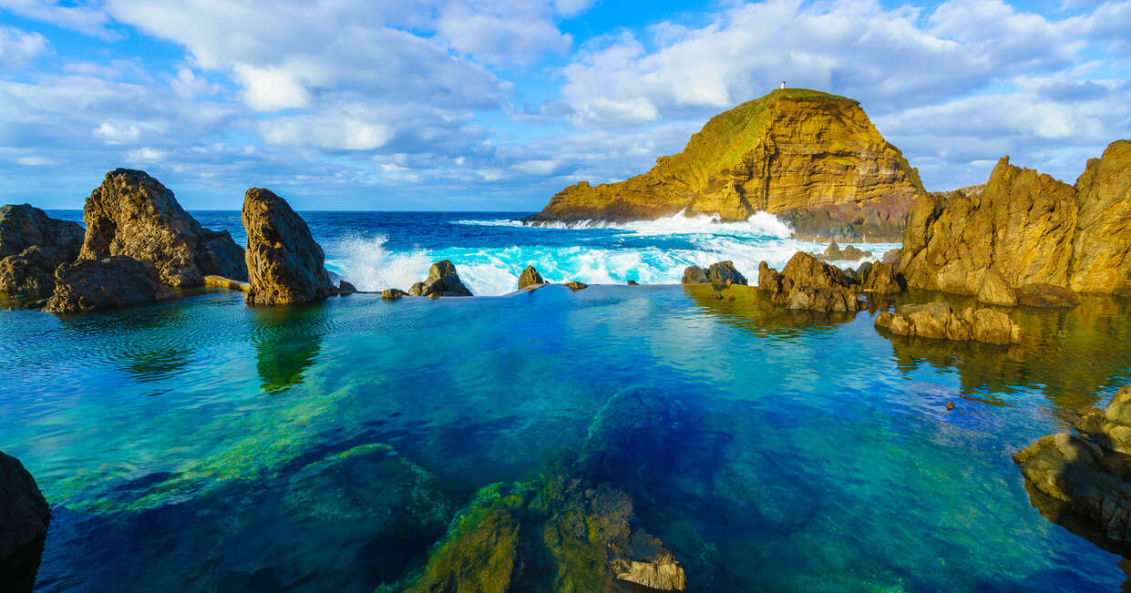 From Faja do Penedo our vehicle will take us along the scenic north coast to Porto Moniz. The 16-kilometre/10-mile stretch of road from Sao Vicente to Porto Moniz took 16 years to complete (it was built entirely by hand!). Porto Moniz is known for its unusual rock pools which were created by volcanic activity. In summer, the sun warms the trapped sea water making them perfect to dip into for a swim or a soak. When the weather is rougher, the waves crash dramatically over the seawall blotting out the rock pools altogether.