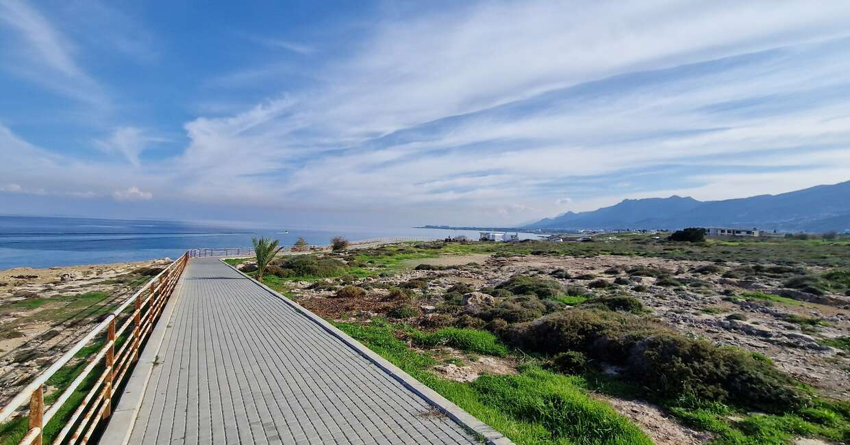 We start our day with a short drive to the neighbouring village of Lapta, where we have a gentle stroll along a three kilometre (two mile) coastal walkway. The path is paved all the way along and winds its way through a small fishing port and then hugs the coast, part of the walk is built over the ocean itself. We'll finish up at a small cafe with wonderful views looking back towards Kyrenia and the entire northern coast of Cyprus, with the backdrop of the Besparmak Mountains providing a natural barrier to the rest of the island.