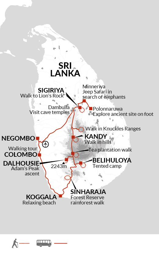 We can expect this morning's 6-kilometre/3.7-mile hike to take around three hours including the ascent/descent of 200 meter/656 feet Lion Rock. The afternoon walk at Polonnaruwa is around 4 kilometres/2.5 miles and will take approximately three hours and 30 minutes including sightseeing. The terrain is flat.