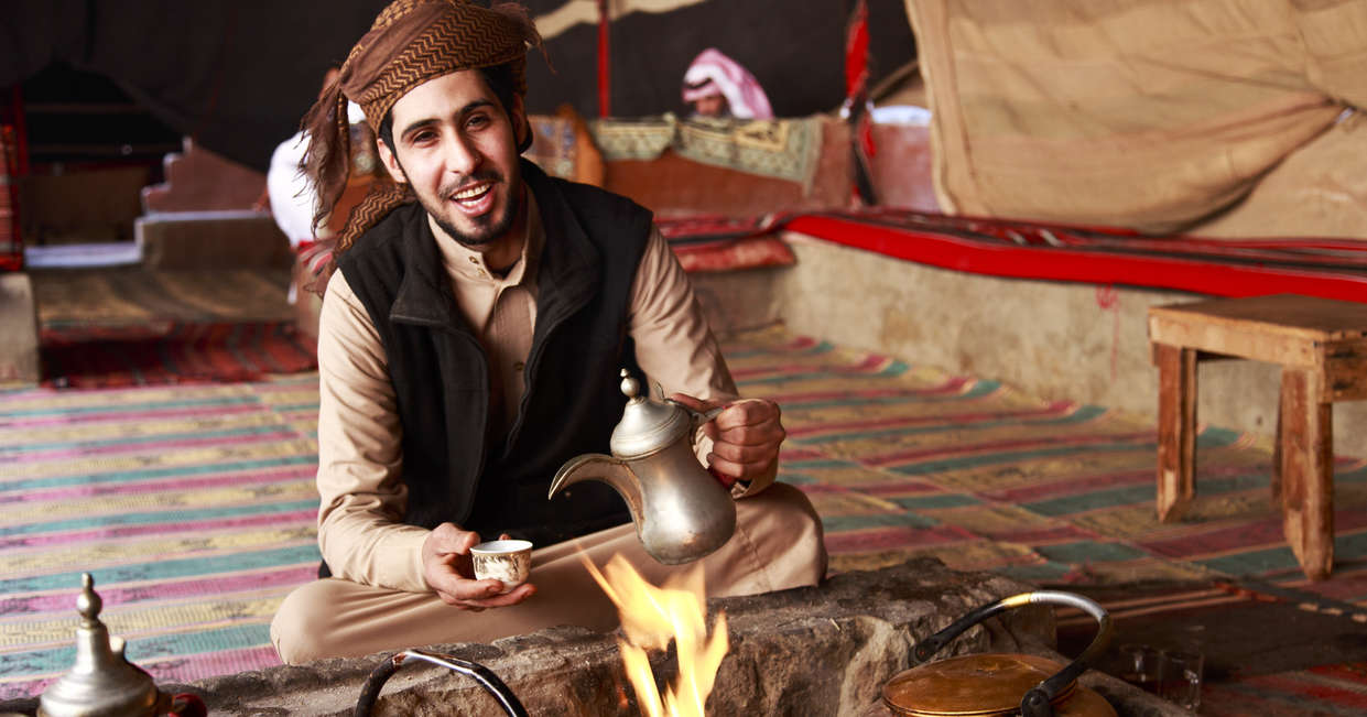Our camp tonight is completely unique - we've been given special permission by the Petra authorities to wild camp within walking distance of the archaeological site. We'll sleep like the local Bedouins in a goat hair tent, laid out with rugs and mattresses. The camp brings us back to basics, so facilities are simple - there's a portable toilet and bowls for washing.