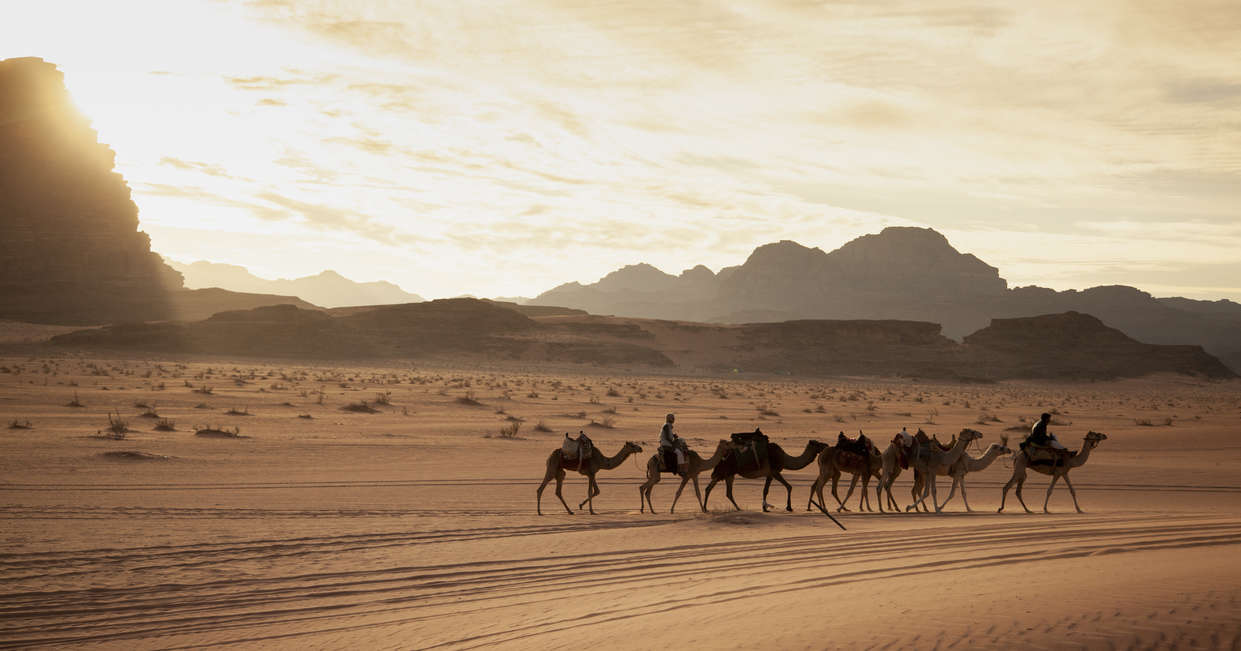 This morning, we'll set off to explore more of the desert dunes. Walking in the footsteps of the early Nabatean traders, we'll follow the route that caravans of spices, silks and perfumes used to take. We'll explore the northern side of Wadi Rum, visiting the natural stone bridge, following camel footprints and spotting ancient inscriptions in the weathered pink granite mountains. After an unforgettable day trekking through stunning desert scenery, we'll return to our camp for a relaxing evening of stargazing.