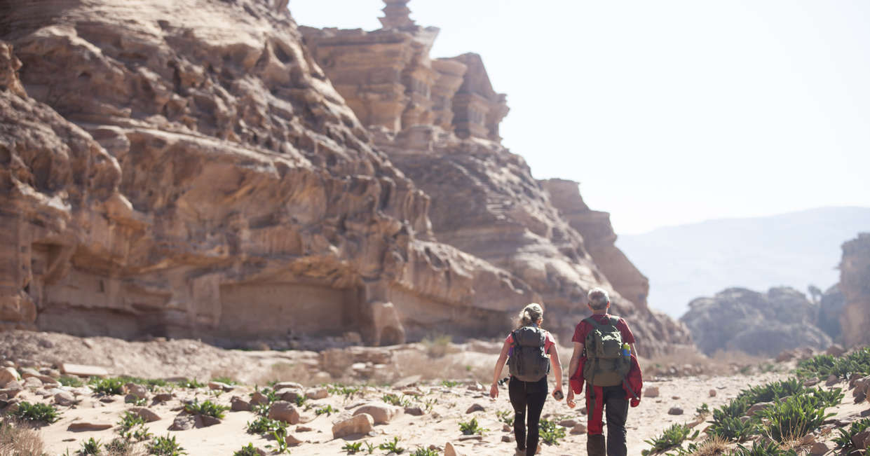 From here, we'll begin the walk down the steps and visit the church, Alhabes Castle, before carrying on to the main tombs and the Nabatean Temple. The rest of the afternoon is free to explore at your own pace before we make the trek back to our campsite along the Wadi Alturkmanyah paths.