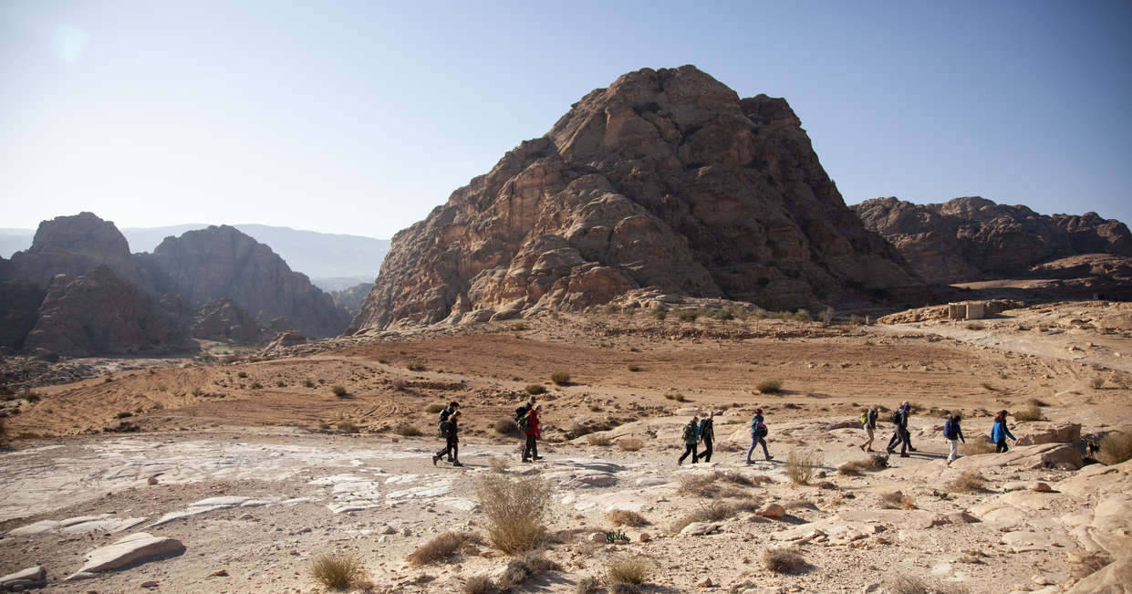 Today, we'll head back into Petra and up to one of the site's greatest monuments, Ad-Deir (The Monastery). We'll set off from our camp across the windswept Alzantour plateau. Once we reach the rim of Jabel Almatalah, we'll take in the views of Petra's mountains before following a trail along the cliffs to the Monastery. High above the city, it's almost hidden in the mountains and provides a panorama across the ancient site.