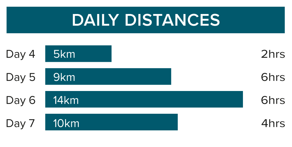 Today's 9-kilometre/5.6-mile walk is expected to take around six hours with a total ascent of 940 metres/3,084 feet and a descent of 440 metres/1,443 feet.