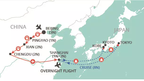 After breakfast you will be met by an English-speaking guide and transferred to Shanghai's cruise terminal, Baoshan, to board your cruise. The rest of the day is free to explore the ship's facilities and settle in. Throughout your cruise, when your ship comes into port, there will be a range of excursions available to help you explore each destination. These excursions are at your own expense and are bookable on your cruise reservation.