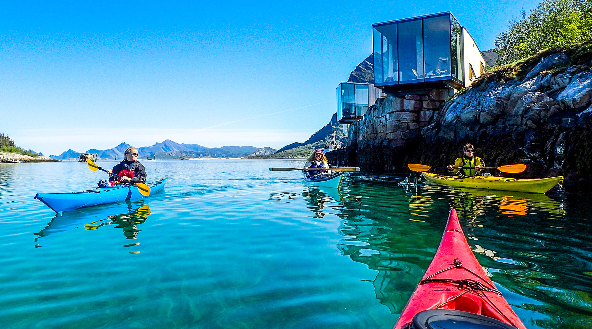 With its unique location between small islands, sandy beaches and high mountains, Manshausen is one of Norway’s best adventure playgrounds. Conceived and developed by celebrated Arctic explorer and author Børge Ousland, the sleek and chic waterfront cabins immerse you into the striking beauty of Norway through dramatic and innovative design. Here you can do everything from simple walks on the nearby islands, easy kayak paddling, deep sea fishing, beachcomb along the sandy white beaches, enjoy the Northern Lights or the midnight sun from the hot tub, to more spectacular treks and activities.