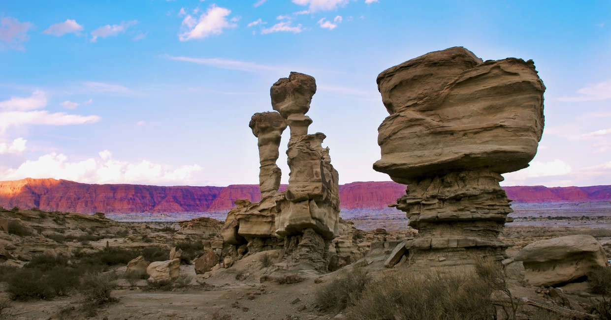 A full day exploring weird and wonderful landscapes awaits us as we delve into the moonlike scenery of Ischigualasto National Park, and the red rock towers of Talampaya. Once the kingdom of dinosaurs, these two parks contain the most complete fossil record known from the Triassic Period and have together been granted UNESCO heritage status.