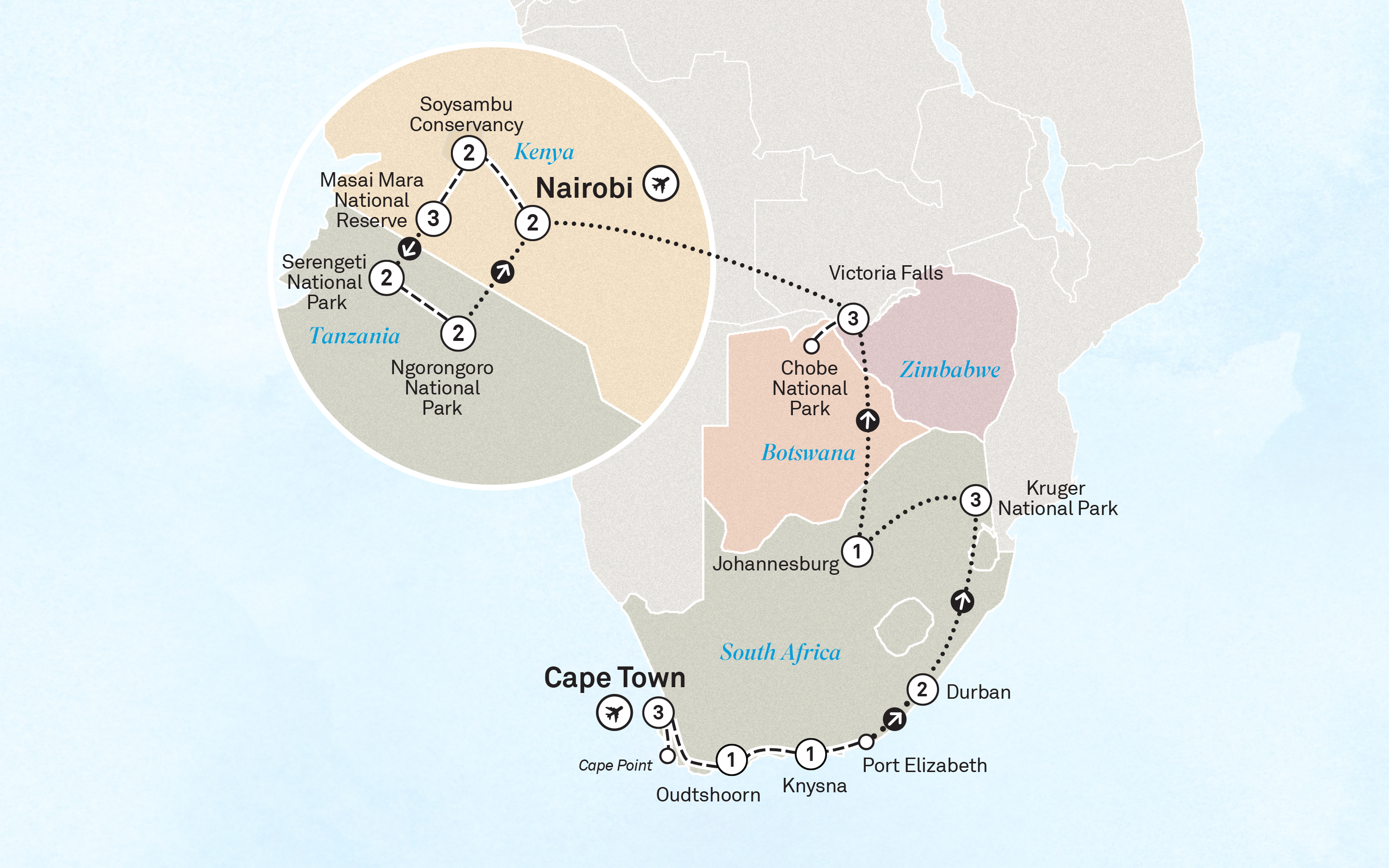 Experience stunning landscapes and rich wildlife on this immersive itinerary that will take you through the essence of Africa.