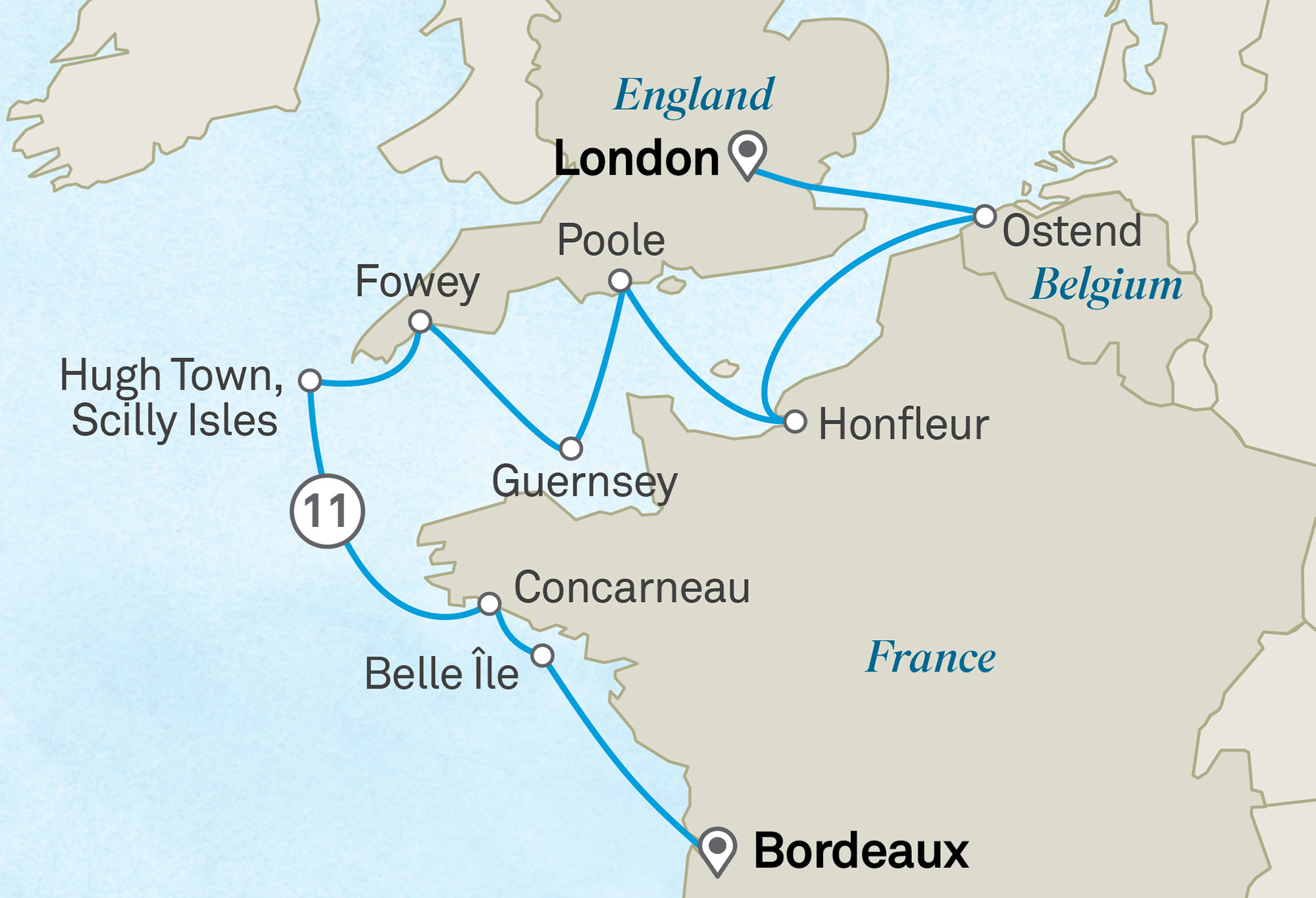 Rugged coastlines, bustling fishing ports, charming islands and breathtaking landscapes await in this captivating corner of Europe. On this Signature Yacht Cruise, see the vistas that inspired legendary artists, sip wine from iconic vineyards, explore medieval castles and sail along the Thames into the centre of London.